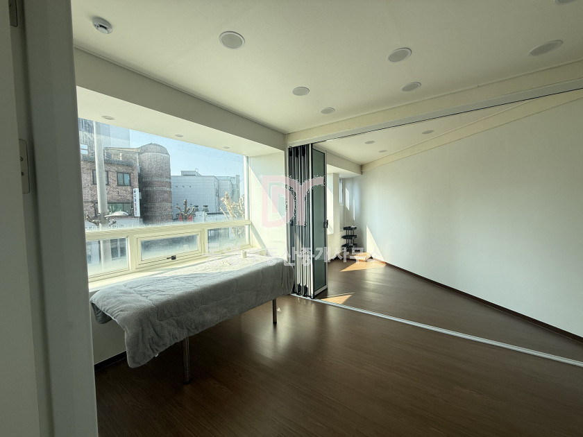 인테리어 완비: 현재 뷰티숍 운영 중으로, 2층에 큰 방 2개가 이미 나뉘어 있어 피부관리, 반영구, 네일아트 혹은 필라테스 기구 배치에 최적화되어 있습니다. 메인룸 벽면에 통거울 부착되어있습니다.